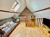- Au rez-de-chaussée: entrée, séjour de 55m² avec cheminée, cuisine indépendante équipée avec coin repas, salle de bains avec douche et baignoire, WC